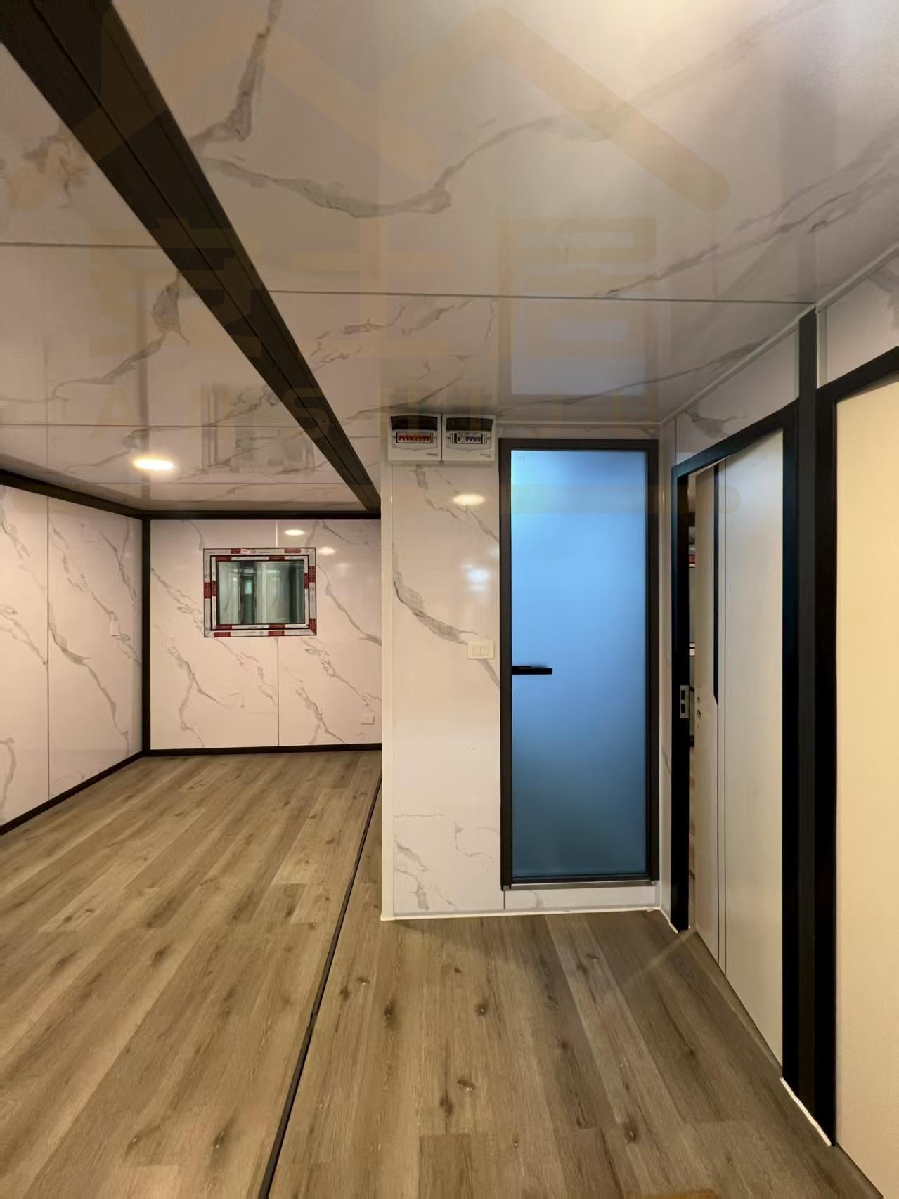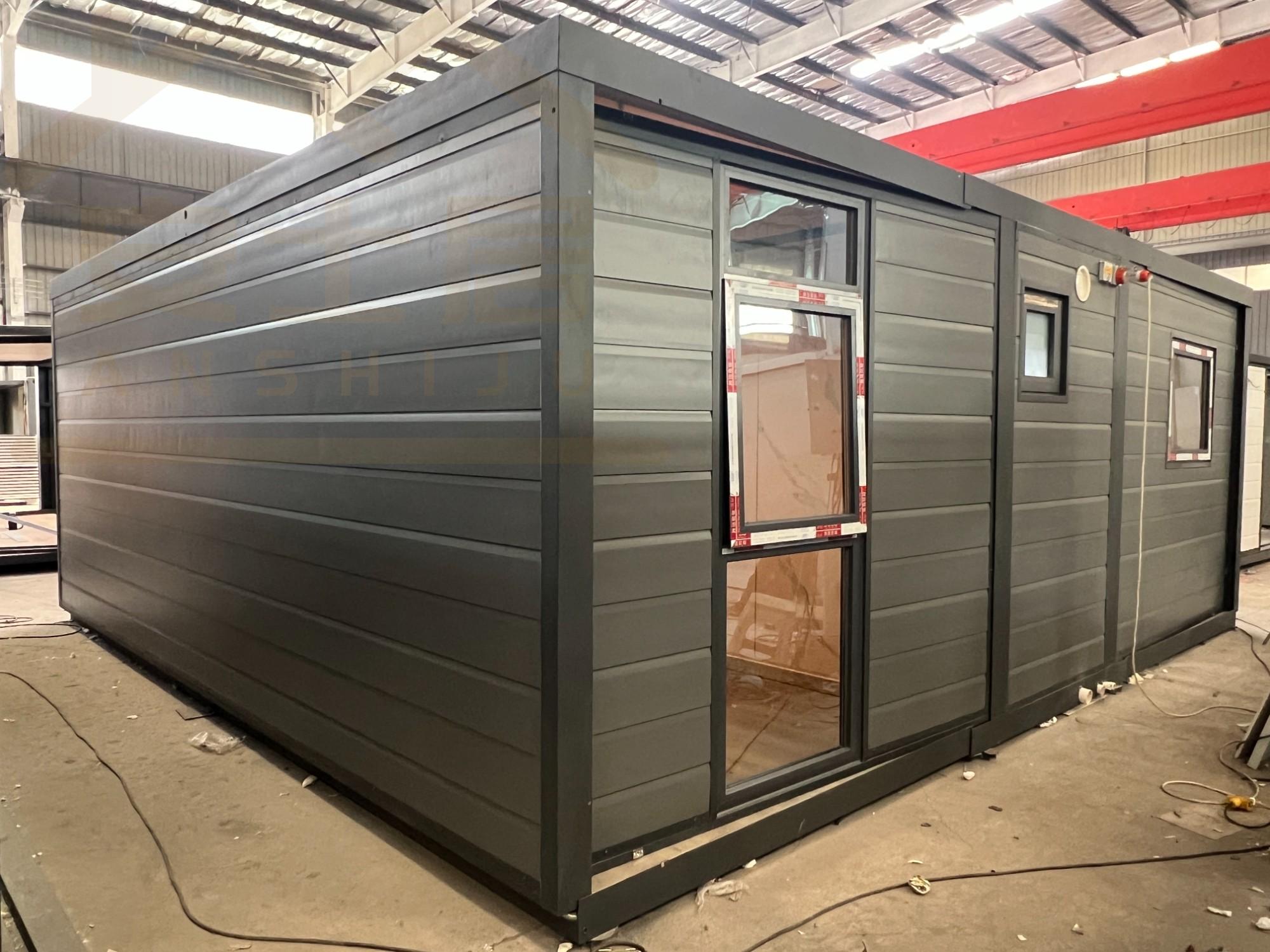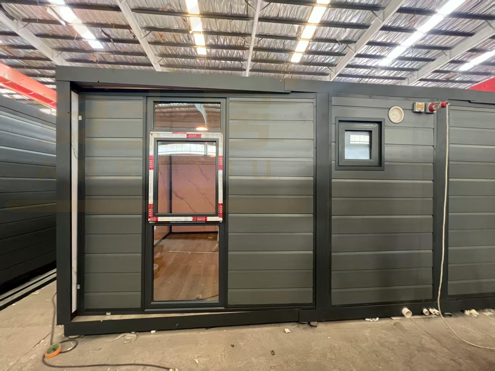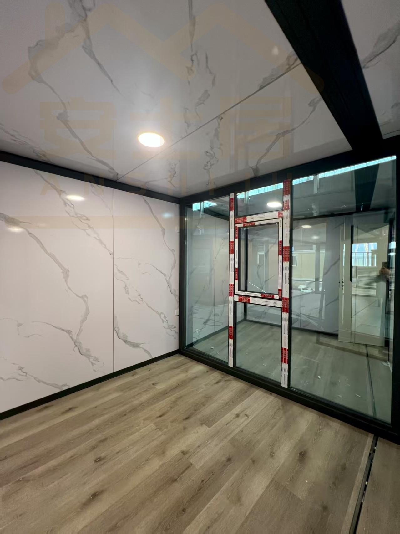 20FT Gray metal carved panel glass curtain wall container house