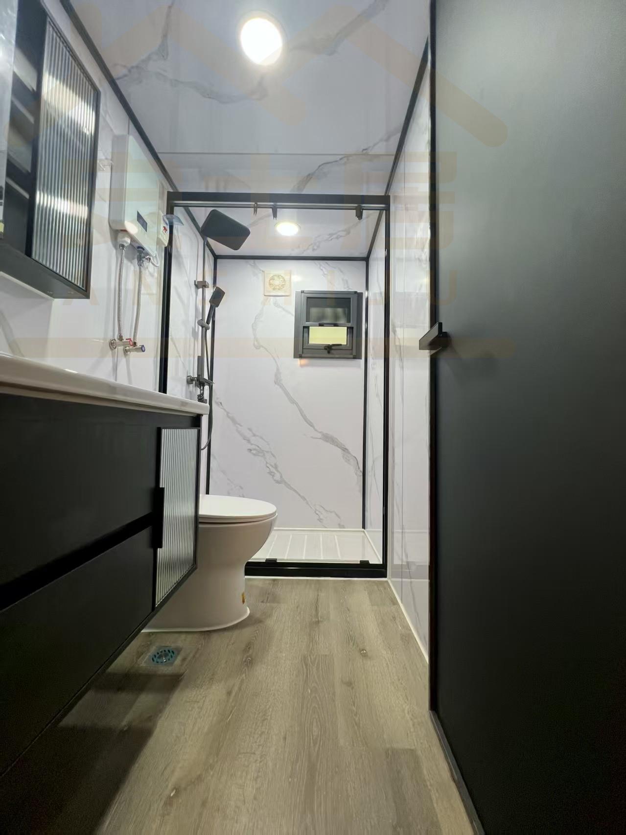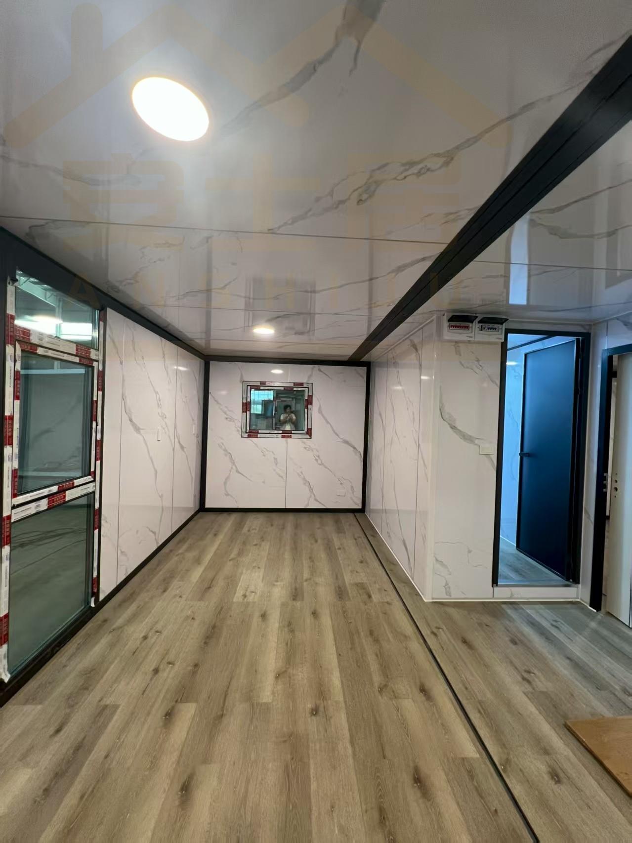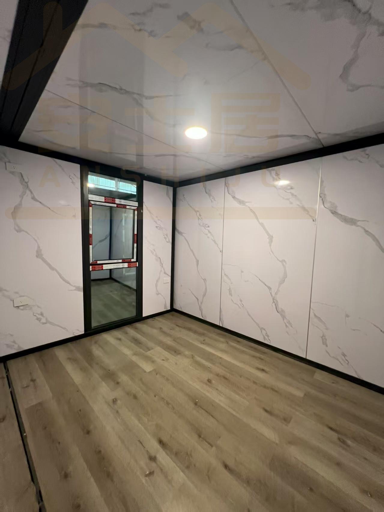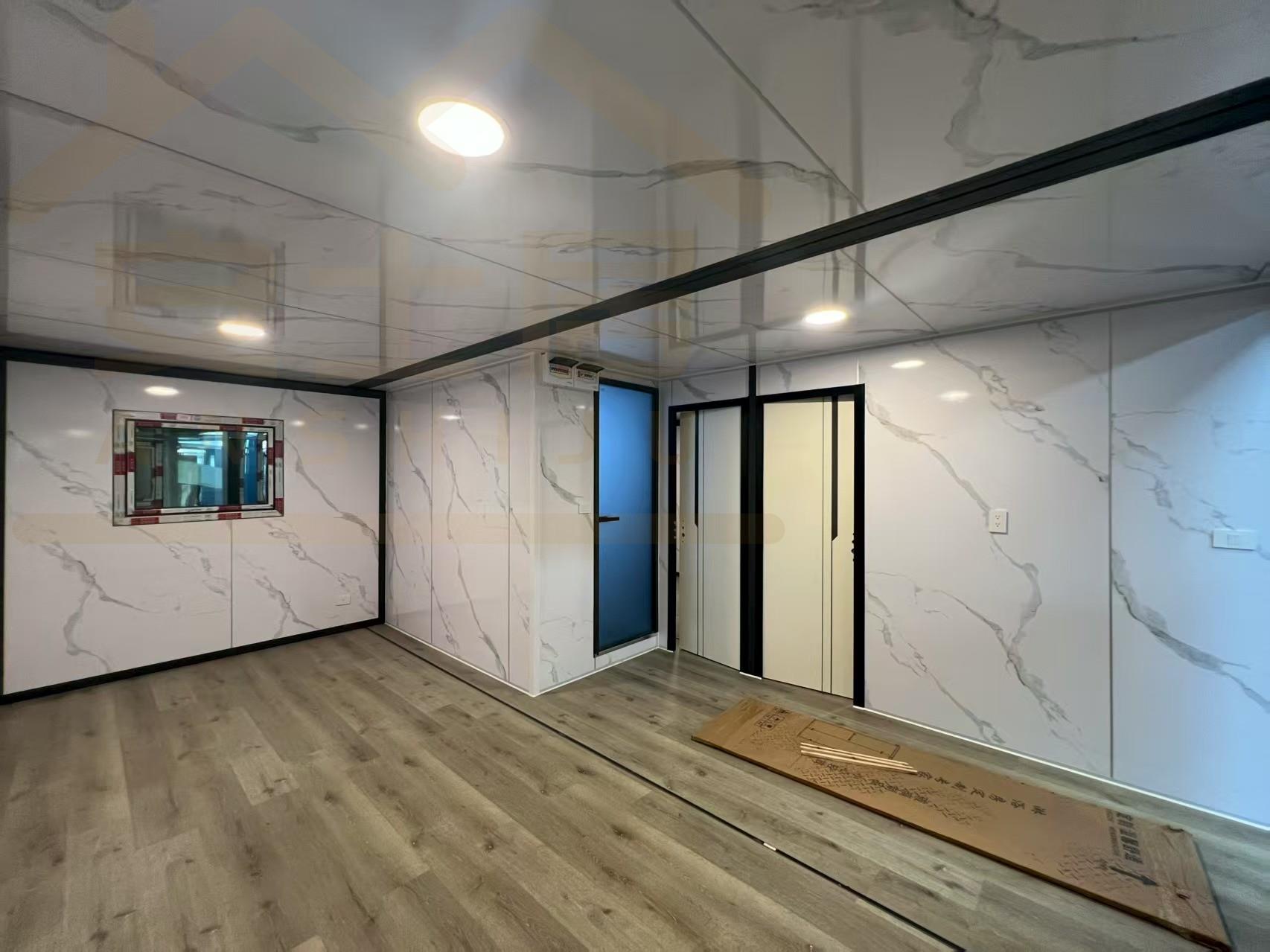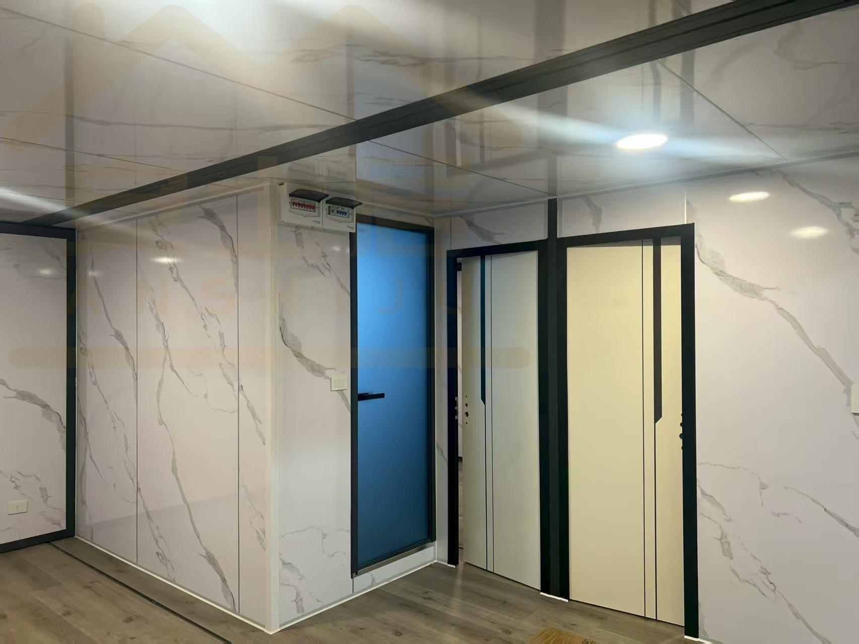 20FT Gray metal carved panel glass curtain wall container house